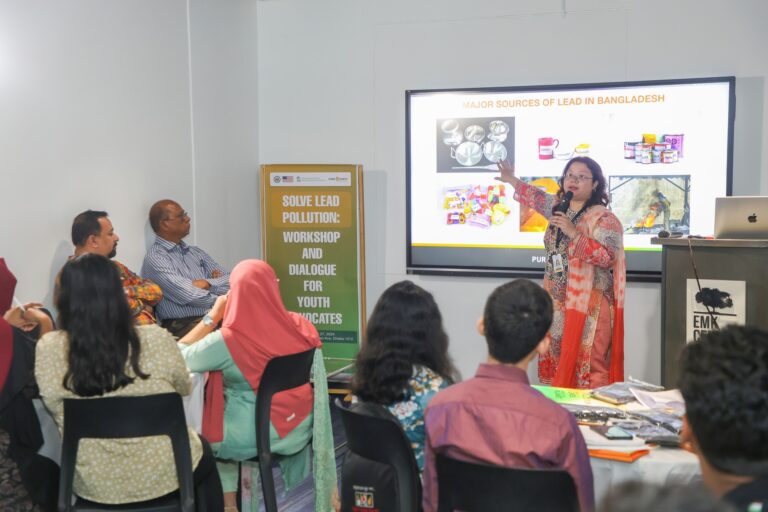 The event took place on February 27, 2024 at EMK Center in Dhaka, with participation from students of various universities and environmental activists. The workshop was conducted by Mitali Das, Communications Lead at Pure Earth Bangladesh. Dr. Md. Mahbubur Rahman, Project Coordinator at icddr,b, was present as the special guest speaker.