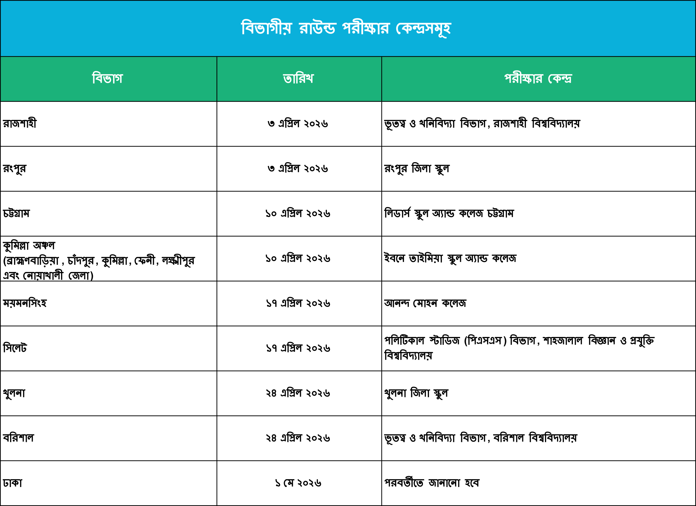বিভাগীয় ও জাতীয় রাউন্ডের পরীক্ষা কোথায় অনুষ্ঠিত হবে?